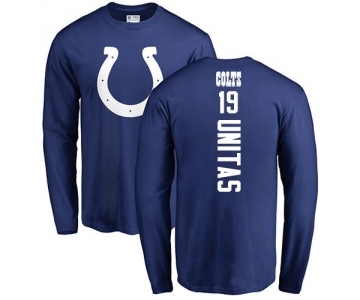 Football Indianapolis Colts #19 Johnny Unitas Royal Blue Backer Long Sleeve T-Shirt