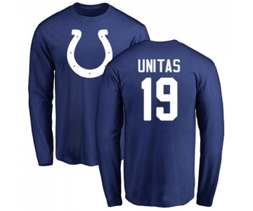 Football Indianapolis Colts #19 Johnny Unitas Royal Blue Name & Number Logo Long Sleeve T-Shirt