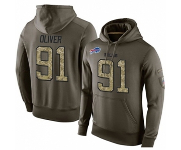 Football Men's Buffalo Bills #91 Ed Oliver Green Salute To Service Pullover Hoodie