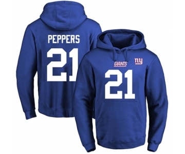 Football Men's New York Giants #21 Jabrill Peppers Royal Blue Name & Number Pullover Hoodie