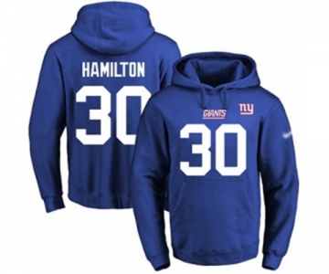 Football Men's New York Giants #30 Antonio Hamilton Royal Blue Name & Number Pullover Hoodie