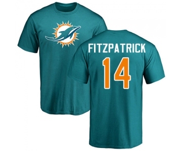 Football Miami Dolphins #14 Ryan Fitzpatrick Aqua Green Name & Number Logo T-Shirt