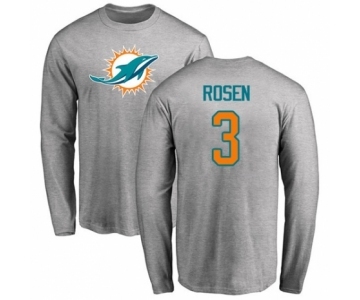 Football Miami Dolphins #3 Josh Rosen Ash Name & Number Logo Long Sleeve T-Shirt