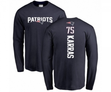 Football New England Patriots #75 Ted Karras Navy Blue Backer Long Sleeve T-Shirt