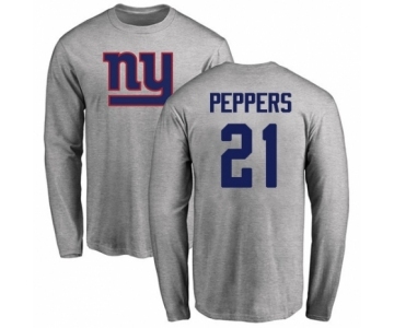 Football New York Giants #21 Jabrill Peppers Ash Name & Number Logo Long Sleeve T-Shirt