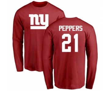Football New York Giants #21 Jabrill Peppers Red Name & Number Logo Long Sleeve T-Shirt