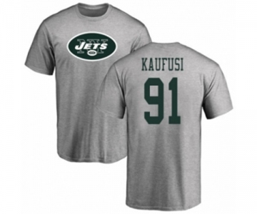 Football New York Jets #91 Bronson Kaufusi Ash Name & Number Logo T-Shirt
