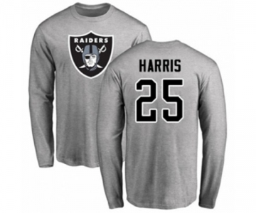 Football Oakland Raiders #25 Erik Harris Ash Name & Number Logo Long Sleeve T-Shirt