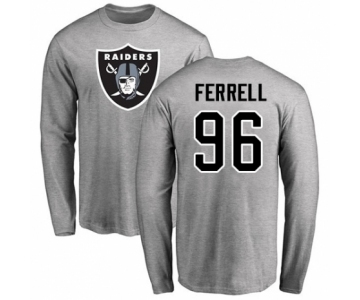 Football Oakland Raiders #96 Clelin Ferrell Ash Name & Number Logo Long Sleeve T-Shirt