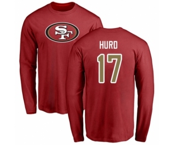 Football San Francisco 49ers #17 Jalen Hurd Red Name & Number Logo Long Sleeve T-Shirt