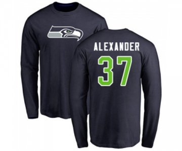 Football Seattle Seahawks #37 Shaun Alexander Navy Blue Name & Number Logo Long Sleeve T-Shirt