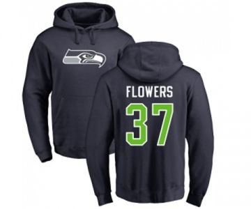 Football Seattle Seahawks #37 Tre Flowers Navy Blue Name & Number Logo Pullover Hoodie