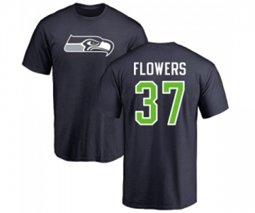 Football Seattle Seahawks #37 Tre Flowers Navy Blue Name & Number Logo T-Shirt
