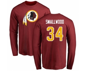 Football Washington Redskins #34 Wendell Smallwood Maroon Name & Number Logo Long Sleeve T-Shirt