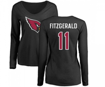Football Women's Arizona Cardinals #11 Larry Fitzgerald Black Name & Number Logo Long Sleeve T-Shirt