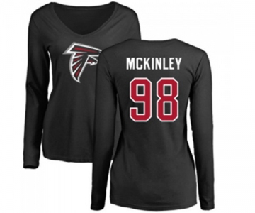 Football Women's Atlanta Falcons #98 Takkarist McKinley Black Name & Number Logo Long Sleeve T-Shirt
