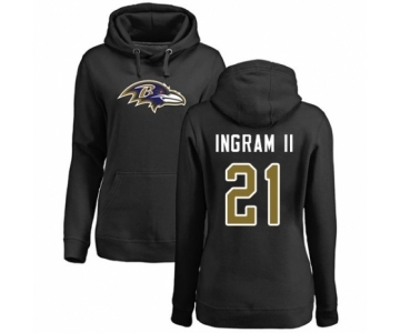 Football Women's Baltimore Ravens #21 Mark Ingram II Black Name & Number Logo Pullover Hoodie