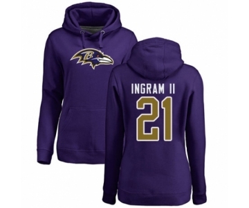 Football Women's Baltimore Ravens #21 Mark Ingram II Purple Name & Number Logo Pullover Hoodie