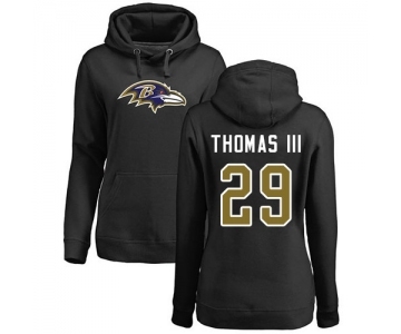 Football Women's Baltimore Ravens #29 Earl Thomas III Black Name & Number Logo Pullover Hoodie