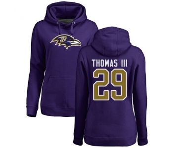 Football Women's Baltimore Ravens #29 Earl Thomas III Purple Name & Number Logo Pullover Hoodie