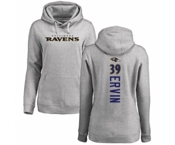 Football Women's Baltimore Ravens #39 Tyler Ervin Ash Backer Pullover Hoodie