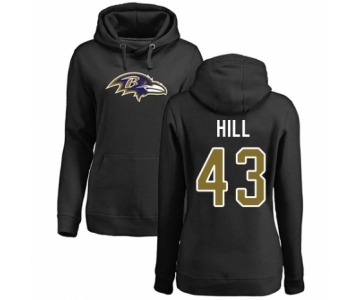 Football Women's Baltimore Ravens #43 Justice Hill Black Name & Number Logo Pullover Hoodie