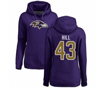 Football Women's Baltimore Ravens #43 Justice Hill Purple Name & Number Logo Pullover Hoodie