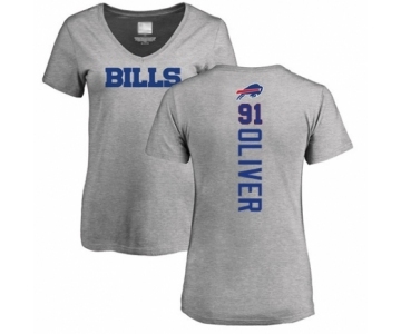 Football Women's Buffalo Bills #91 Ed Oliver Ash Backer V-Neck T-Shirt