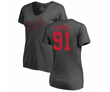 Football Women's Buffalo Bills #91 Ed Oliver Ash Backer V-Neck T-Shirt