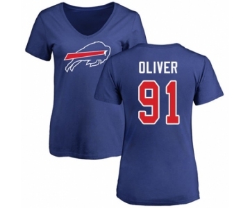 Football Women's Buffalo Bills #91 Ed Oliver Royal Blue Name & Number Logo T-Shirt