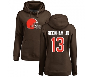 Football Women's Cleveland Browns #13 Odell Beckham Jr. Brown Name & Number Logo Pullover Hoodie