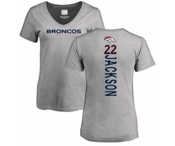Football Women's Denver Broncos #22 Kareem Jackson Ash Backer V-Neck T-Shirt