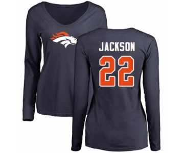 Football Women's Denver Broncos #22 Kareem Jackson Navy Blue Name & Number Logo Long Sleeve T-Shirt