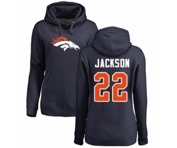 Football Women's Denver Broncos #22 Kareem Jackson Navy Blue Name & Number Logo Pullover Hoodie