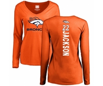 Football Women's Denver Broncos #22 Kareem Jackson Orange Backer Long Sleeve T-Shirt