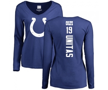 Football Women's Indianapolis Colts #19 Johnny Unitas Royal Blue Backer Long Sleeve T-Shirt