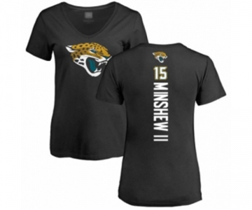 Football Women's Jacksonville Jaguars #15 Gardner Minshew II Black Backer V-Neck T-Shirt