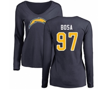 Football Women's Los Angeles Chargers #97 Joey Bosa Navy Blue Name & Number Logo Long Sleeve T-Shirt