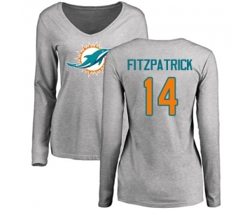 Football Women's Miami Dolphins #14 Ryan Fitzpatrick Ash Name & Number Logo Long Sleeve T-Shirt