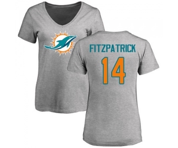 Football Women's Miami Dolphins #14 Ryan Fitzpatrick Ash Name & Number Logo T-Shirt