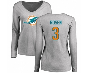 Football Women's Miami Dolphins #3 Josh Rosen Ash Name & Number Logo Long Sleeve T-Shirt