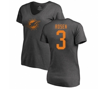 Football Women's Miami Dolphins #3 Josh Rosen Ash Name & Number Logo T-Shirt