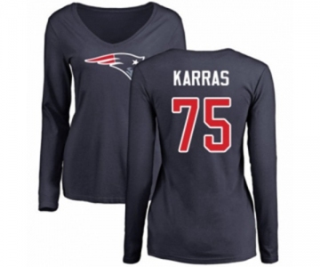 Football Women's New England Patriots #75 Ted Karras Navy Blue Name & Number Logo Slim Fit Long Sleeve T-Shirt