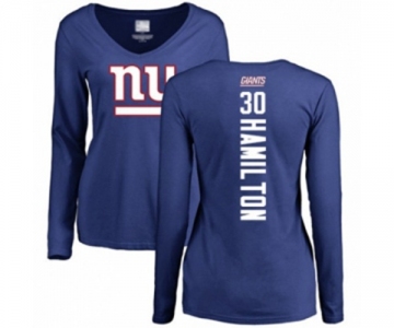 Football Women's New York Giants #30 Antonio Hamilton Royal Blue Backer Long Sleeve T-Shirt