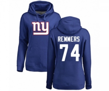 Football Women's New York Giants #74 Mike Remmers Royal Blue Name & Number Logo Pullover Hoodie