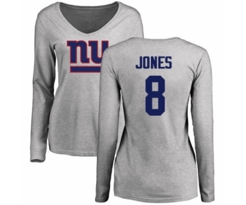 Football Women's New York Giants #8 Daniel Jones Ash Name & Number Logo Long Sleeve T-Shirt