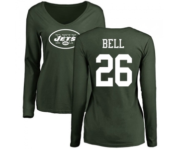 Football Women's New York Jets #26 Le'Veon Bell Green Name & Number Logo Long Sleeve T-Shirt