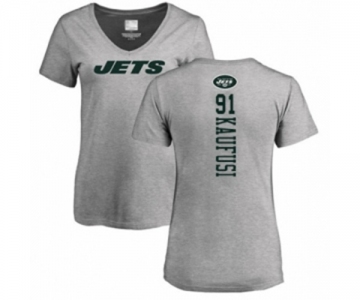 Football Women's New York Jets #91 Bronson Kaufusi Ash Backer T-Shirt