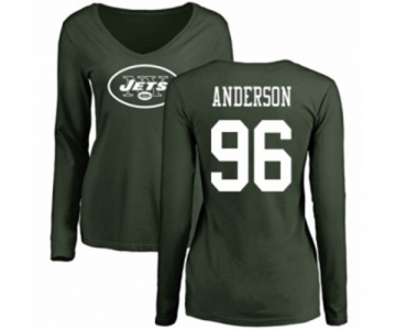 Football Women's New York Jets #96 Henry Anderson Green Name & Number Logo Long Sleeve T-Shirt