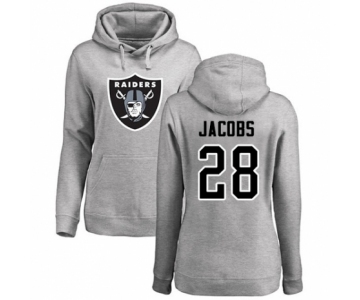 Football Women's Oakland Raiders #28 Josh Jacobs Ash Name & Number Logo Pullover Hoodie